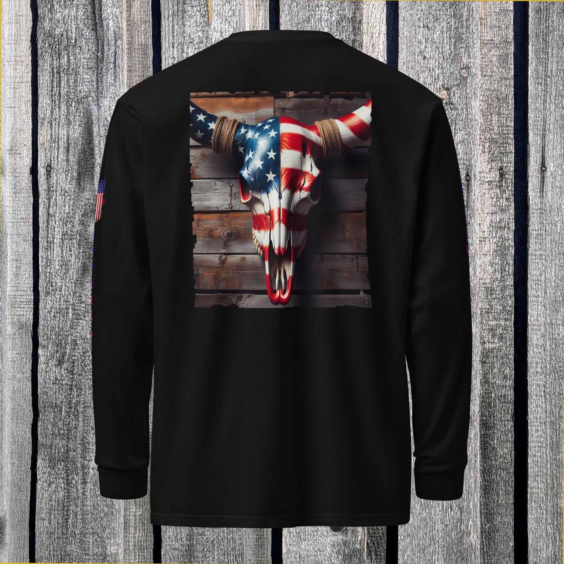 Outlaw Blood Apparel proudly introduces the American Spirit shirt, a perfect fusion of patriotism and rugged Western aesthetics. Features a striking steerhead design adorned with the iconic stars and stripes, symbolizing the unyielding spirit of America and the untamed beauty of the frontier.