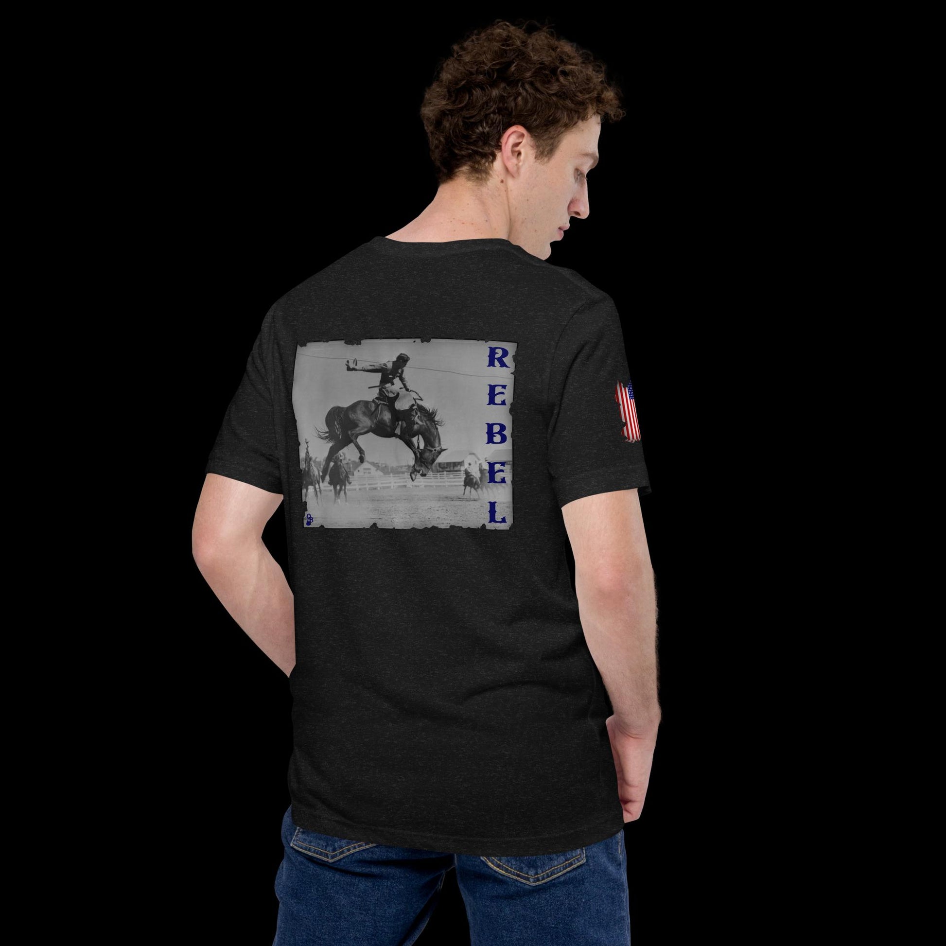 The **REBEL Bronc Rider Shirt** embodies the raw courage and unbreakable spirit of the cowboy who tames the untamable. This design captures the essence of the bronc rider—a true rebel who faces the wild with grit and determination. With its dynamic, powerful imagery, this shirt is a tribute to those who live for the thrill of the ride, embracing the risks and challenges with unwavering resolve. Perfect for anyone who embodies the fearless, independent spirit of the rodeo, the REBEL Bronc Rider Shirt is a bold statement of strength and freedom.