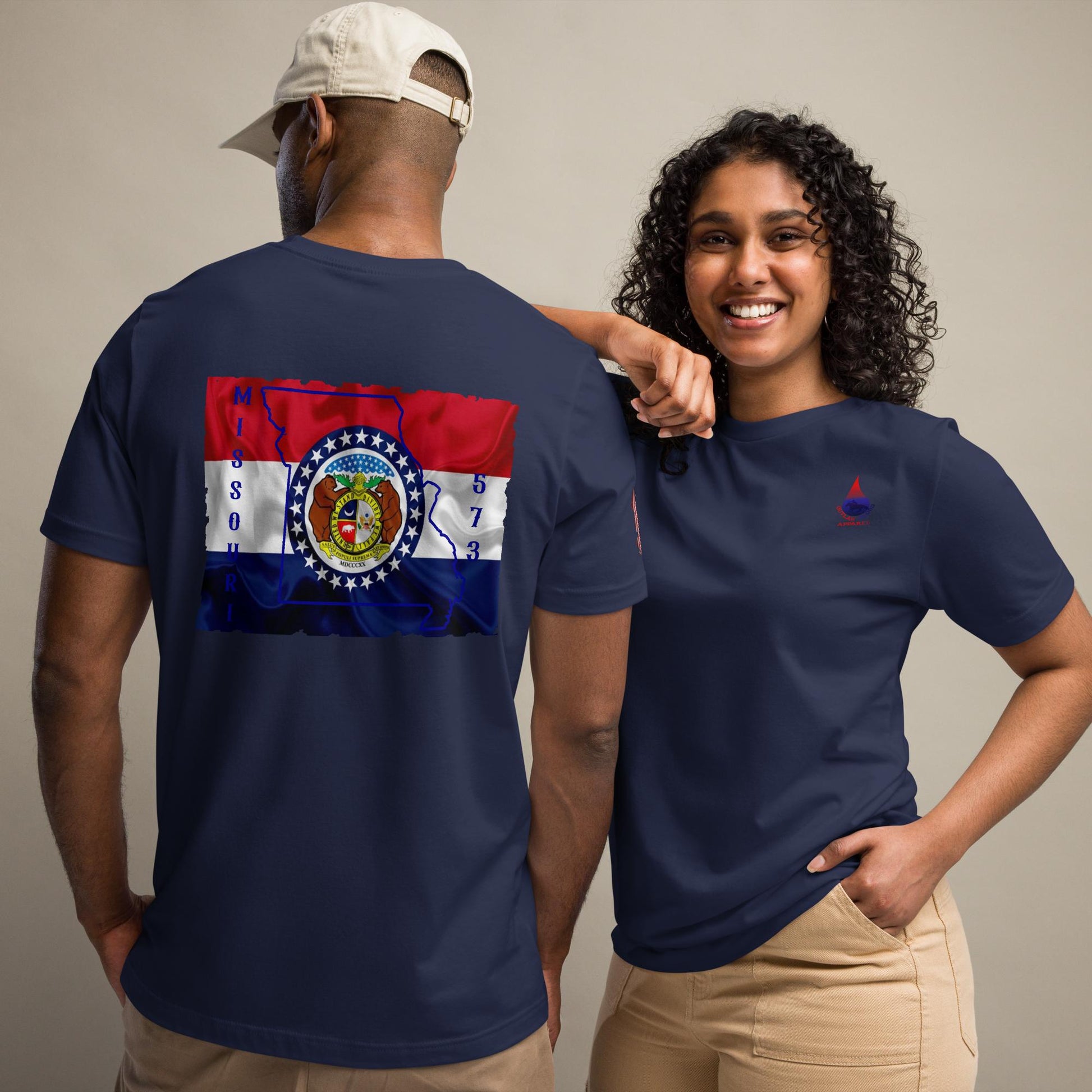 Show your Missouri pride with this unique and stylish shirt! The t-shirt design includes the shape of the State of Missouri seamlessly incorporated into the iconic Missouri state flag. Within this design, you will find the area code 573, which represents Jefferson City, the lively capital city of Missouri. This shirt is ideal for those who have a deep appreciation for the Show-Me State and want to honor its diverse history and traditions.